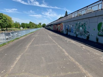Bisher war der Mainuferweg in diesem Bereich auf bis zu 2,20 m verengt. Das konnte, gerade bei Gegenverkehr, schon mal knapp werden. Jetzt steht zwischen der Stützwand der B 43 und der ehemaligen Schleusenkammer die volle Breite zur Verfügung. Das macht es komfortabler, sicherer und entspannter für alle, ob mit dem Rad oder zu Fuß. Außerdem kann jetzt die aus den 1920er Jahren stammende Schleusenkammer eingesehen werden. Die entstandene Platzfläche eignet sich dabei hervorragend für eine kleine Pause.