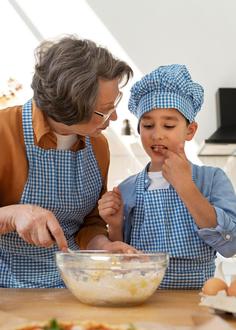 Erwachsene Menschen aller Altersgruppen und Kinder sind zum Backen der Generationen eingeladen.
