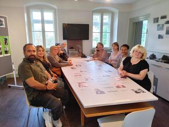 Der Integrationskurs am ehemaligen Ratstisch der Stadt Raunheim im Heimatmuseum.