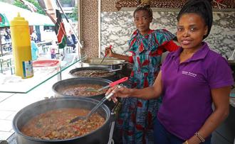 Magreth Bithe, Mitarbeiterin bei Hakuna Matata, bereitet afrikanische Spezialitäten zu. Sie ist ebenfalls angetan von dem Rathausplatz als Standort für das Festival.
