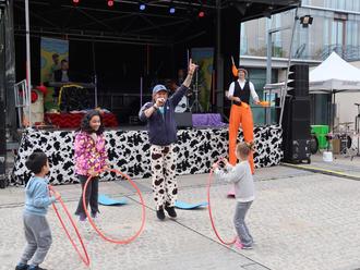 Musik, Jonglage, Balancieren, Tanz und viel Spaß, dies erlebten Kinder und Erwachsene auf dem Rathausplatz. Denn der hatte sich am 24. Mai in einen Zirkus mit Bühne verwandelt, wo Klein und Groß gemeinsam nach Lust und Laune herumtollen und musizieren durften. Die Trommelfloh Family ist nach Raunheim gekommen, um mit ihrem Familientag ein tolles Programm und viel Unterhaltung zu bieten.