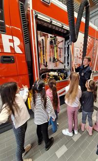 Einmal einen Blick in ein Feuerwehrauto werfen - das war möglich für die Vorschulkinder der Kita Schatzkiste.