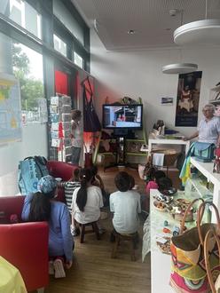 Natürlich durften sich die Kinder auch selbst im Laden umsehen und sich einzelne Produkte anschauen. Dabei weckten vor allem Percussion-Instrumente und gehäkelte Tiere ihr Interesse. Aber auch Schmuck, Accessoires und Lebensmittel wurden neugierig begutachtet.