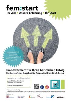 Ob Sie Ihren beruflichen (Wieder-)Einstieg planen, sich beruflich neu orientieren oder verändern möchten, ob Sie sich Unterstützung im Bewerbungsprozess wünschen oder Informationen zu Ausbildungs- und Qualifizierungsmöglichkeiten suchen - fem:start ist so individuell wie Ihre persönliche Situation.