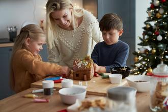 Lebkuchenhäuser verzieren ist während einer Eltern-Kind-Veranstaltung in der Kita Drachenland möglich.