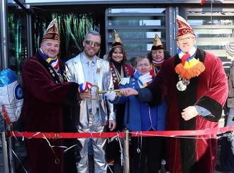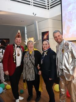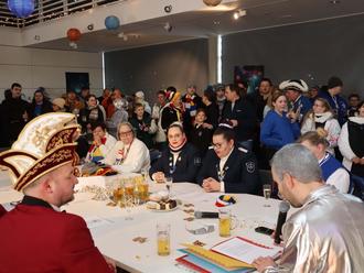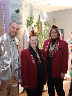 Im wunderbar kosmisch geschmückten Bürgersaal mit überdimensionaler Rakete startete mit der Sitzung des närrischen Rates der zweite Teil des Rathaussturms. Stärken durften sich alle Gäste in der Raumstation mit Leberkäsebrötchen und Kreppeln sowie Getränken, die von den Rathausmitarbeiterinnen und -mitarbeitern serviert wurden.