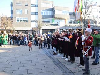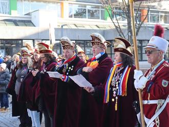 Bitterkalt war es am Sonntagvormittag. Aber die Minustemperaturen hielten die Närrinnen und Narren nicht vom Sturm des Verwaltungsgebäudes ab. Beide Seiten warfen geschliffene Worte in das verbale Gefecht. „Ihr Narren, haltet ein, bleibt stehen, so leicht wird das nicht hier gehen … Hier zählt noch Ordnung, klar und pur, mit Akten Stempeln und Struktur“, versuchte der Rathauschef, mit silbernem Haarschopf unschwer zu erkennen, den Anstürmenden Einhalt zu gebieten.