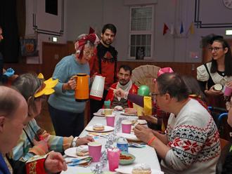 Stimmungsmusik, Tanz und Polonaise, Kaffee, Kakao und Kreppel: Am 10. Januar war in der Heinrich-Press-Halle wieder einmal zur traditionellen Faschingsparty für Menschen mit und ohne Einschränkung geladen. Hexen, Bienen, Cowboys, Zauberer, Clowns und andere Kostümierte strömten in die Halle, um einen bunten Nachmittag zu erleben, und klatschten zu den Hits, die DJ Chico Fernandes auflegte.