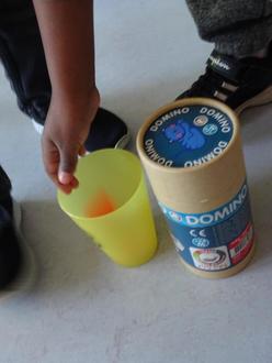 Wieder wird der Kegel gedreht und die Kinder der Gruppe, auf die die Kegelspitze zeigt, dürfen zur Abstimmung schreiten. Zeigt der Kegel auf die orange Gruppe, so wird der orange Becher umgedreht als sichtbares Zeichen, dass dieser Becher für diese Abstimmungsrunde nicht verwendet wird. Die Kinder der orangen Gruppe stimmen mit ihrem Stimmzettel aus Moosgummi ab, indem sie ihn in den entsprechenden Becher legen. Einige Kinder wägen kurz ab, welchem Spiel sie ihre Stimme geben möchten, die meisten entscheiden sich jedoch blitzschnell.