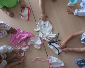 Welche Farbe soll mein Lätzchen heute haben? Die Krippenkinder in der Kita FarbenFroh entscheiden dies selbst.