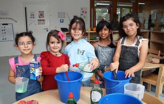 Dabei lernten die Mädchen und Jungen altersangemessen kleine physikalisch-chemische Prozesse kennen. Die jungen Forscherinnen und Forscher erfuhren dabei, dass sich aus verschiedenen Stoffen ein neuer Stoff herstellen lässt. Das Familienzentrum möchte mit der Forschergruppe das Interesse an Experimenten wecken.