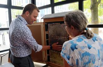 Wer mochte, konnte sich für einen Moment in einen Imker oder eine Imkerin verwandeln und die Waben eines Bienenstockes betrachten. Ganz anders sahen dagegen die Wespen- und Hornissenhäuser aus, die ausgestellt waren.
