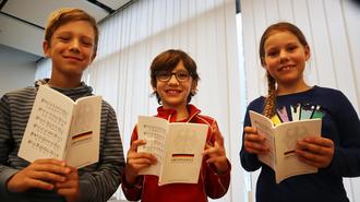 Zum Abschluss durfte sich jedes Kind ein Exemplar des Grundgesetzes mitnehmen.