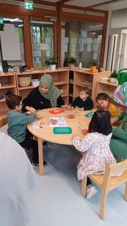 Intensiv roch es nach gebackenem Käse, als Natalja Petritski die kleinen rundlichen Pizzen aus dem Backofen in der Küche der Kita Schwalbennest holte. Sie arbeitet dort als Hauswirtschaftskraft und hatte im Namen des Familienzentrums an zwei Nachmittagen Kinder und Eltern zum gemeinsamen Pizzabacken eingeladen.