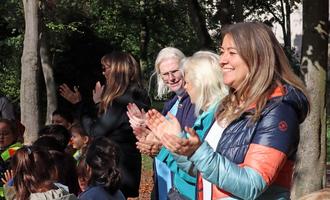 Nach der Begrüßung übergab Aline Becht an Sultan Ardic, Stellvertretende Leiterin der Kita FarbenFroh. Sie stimmte gemeinsam mit den Kindern, Erzieherinnen und Erziehern voller Freude „Tschu tschu wa“ und „Das Lied über mich“ an - ein Lied, das gemeinsam mit den Schulen in den regelmäßig stattfindenden Steuerungsgruppentreffen ausgesucht wurde. Die Kinder lernen dieses Lied schon in der Kita, sodass es in der Grundschule als bekannt vorausgesetzt werden kann.