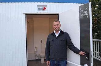 Jochen Brune, Fachdienstleiter Infrastruktur, weist darauf hin, dass diese Toilette, die in einem Container untergebracht ist, zunächst ein Provisorium ist. Für eine höherwertig gestaltete, sich selbstreinigende Toilettenanlage erstellt die Stadt Raunheim derzeit einen Förderantrag. Die Stadtverwaltung rechnet mit einem Realisierungszeitraum innerhalb von anderthalb Jahren.