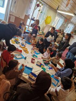 Der Besuch hat sich gelohnt: Die Erzieherinnen hatten vier Stationen vorbereitet, um den Eltern und ihren Kindern einen tollen, abwechslungsreichen Vormittag zu bereiten. Sie durften einen Bilderrahmen basteln und ein schönes Foto vor der großen liebevoll bunt gestalteten „Welcome-Wand“ machen, welches dann in den Bilderrahmen eingefügt wird.
