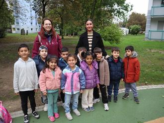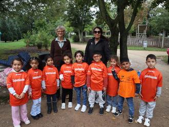 „Wir werden immer größer“ – dieses bekannte Kinderlied schallte lautstark durch den Luise-Mauer-Park, gesungen von rund 190 Kindern, die im kommenden Sommer eingeschult werden. Den Takt gab Ingrid Roth, die Leiterin der Kindertagesstätte „Zauberhäuschen“, persönlich vor. Einige Passanten blieben spontan stehen, um dem imposanten Kinderchor zu lauschen. Der grüne Park im Herzen der Ringstraßensiedlung war das Ziel des diesjährigen Sternmarsches am 26. September, an dem alle neun städtischen Kitas teilnahmen. Sternmarsch deshalb, weil die Kinder aus allen neun städtischen Kitas aus verschiedenen Teilen der Stadt – wie Strahlen eines Sterns – zu einem gemeinsamen Mittelpunkt strömen.