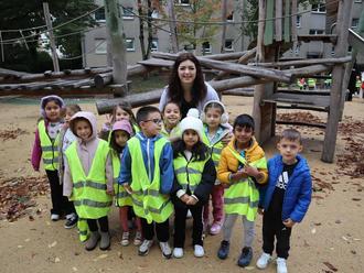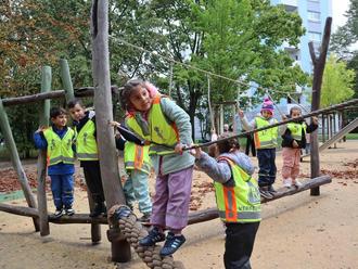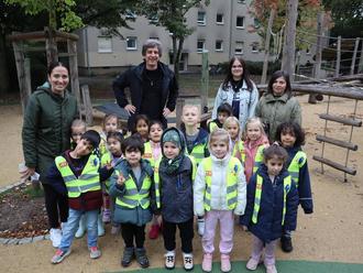 Nach dem gemeinsamen Singen stürmten die Kinder vergnügt die Spielgeräte im Park und nutzten die Zeit zum ausgelassenen Toben.