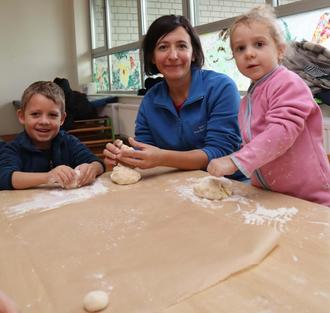 Eltern und Kinder lernten im Familienzentrum das Rezept und die Zubereitung von russischem Lebkuchen kennen.