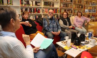 Birgit Schick (rechts) von der Mediathek begleitet den Lesezirkel an jedem ersten Dienstag im Monat.