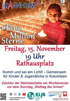 am Freitag, 15. November, um 19 Uhr nehmen der KLJB Jugend-Treff in Kooperation mit der Caritas Rüsselsheim und der Stadt Raunheim an der Aktion #EineMillionSterne teil.