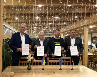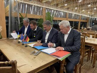 Zum Abschluss des Besuchs trafen sich die Vertreterinnen und Vertreter aus Lubny sowie Rüsselsheim am Main, Kelsterbach und Raunheim zum Abendessen. Bei regionalen Spezialitäten wurde die Städtefreundschaft mit neuem Leben gefüllt. Höhepunkt des Abends war die Unterzeichnung einer gemeinsamen Absichtserklärung durch Bürgermeister Oleksandr Hryzajenko (Lubny), Oberbürgermeister Patrick Burghardt (Rüsselsheim am Main), Bürgermeister Manfred Ockel (Kelsterbach) und Bürgermeister David Rendel (Raunheim).