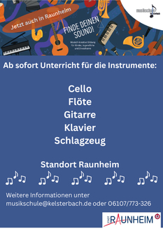 Die Musikschule Kelsterbach bietet Instrumentalunterricht in Raunheim an.