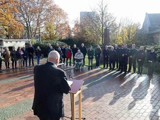 Der Ortsverband des Sozialverbandes VdK und die Stadt Raunheim gedachten am Volkstrauertag, dem 16. November, den Opfern von Krieg, Vertreibung und Terror. Hans-Joachim Hartmann, Vorsitzender des VdK-Ortsverbandes und Gastgeber der Andacht, freute sich über die Teilnehmenden, die den Weg zum Ehrenmal gefunden hatten. Darunter befanden sich die Erste Stadträtin Dorothee Herberich, die Stadträte Volker Schalle und Thomas Fuchs, der CDU-Fraktionsvorsitzende Stefan Teppich, weitere Stadtverordnete und die Freiwillige Feuerwehr Raunheim.