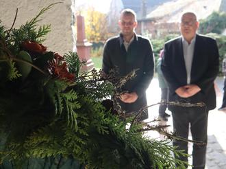 Bürgermeister Rendel sprach ebenfalls die Stadtgesellschaft an: „Menschen aus über hundert Nationen leben hier. Diese Vielfalt ist keine Bedrohung, sie ist unsere Stärke“. Zusammenhalt und Toleranz sei der beste Schutz vor Spaltung, Gewalt und Krieg. Die Niederlegung des Kranzes am Volkstrauertag sei ein Zeichen der Trauer und Erinnerung aber zugleich auch ein Versprechen, nicht zu vergessen und Verantwortung zu übernehmen.
