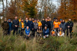 An der Pflanzaktion nahmen neben David Rendel, Bürgermeister der Stadt Raunheim, Karin Jechimer und Marc Schneider vom Fachteam Umweltplanung der Stadt Raunheim, Dieter Baumgardt vom NABU Raunheim/Rüsselsheim und Revierförster Oliver Burghardt rund 25 freiwillige Helferinnen und Helfer von Amazon aus dem Großraum Frankfurt teil. Die Aktion wurde durch das Programm Amazon InCommunities finanziert.