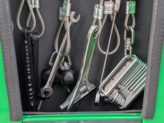 Ihr Reifen ist platt, der Sattel sitzt zu locker oder eine Schraube muss festgezogen werden? Kein Problem! Die Station ist mit allem ausgestattet, was man für eine schnelle Reparatur braucht: Luftpumpe, Reifenheber, Rollgabelschlüssel, Torx-Schlüssel, Winkelschlüsselsatz und natürlich ein Schraubendreher.