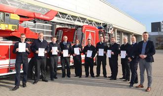 Gränitz und Gerald Willberg, Fachteamleiter Brand- und Katastrophenschutz, sprachen zum Abschluss der Versammlung einige Beförderungen aus: Oberbrandmeister ist Christian Jösch, Brandmeister sind Dominik Sziel und Patrick Wieczorek, Hauptlöschmeisterin ist Nadia Maiss, Hauptlöschmeister ist Niels Körner, Oberlöschmeister ist José Reyes Schmitt, Hauptfeuerwehrmann ist Benito Polli, Oberfeuerwehrmann ist Tom Luca Klee und Feuerwehrmann ist Joel Klimon.
