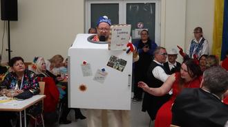 Für die Schenkelklopfer und Lachtränen sorgten Steffen Jobst als Pfarrer Fulder, Gunter Raupach im Clinch mit Fahrrad- und Autofahrern, Bäppi La Belle alias Thomas Bäppler-Wolf mit allerlei Dollereien und stimmungsvollen Liedern, das närrische und zänkische Prinzenpaar Marius Heinrich und Christina Viefhaus sowie Dieter Meisenzahl erst als sprechender Kühlschrank dann mit einem magischem Schunkelbrett. Als Protokollantin stieg Petra Kapp in die Bütt. Patrick Fiederer brannte zum Schluss der frischen und fröhlichen Sitzung noch ein buntes Musik-Feuerwerk ab.