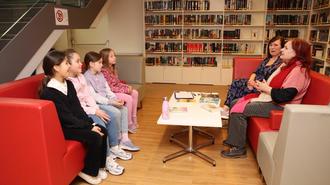 Mediatheksleiterin Beate Remané und Mitarbeiterin Birgit Schick freuten sich beim Auftakt über vier Mädchen, die auf der Couch im Souterrain Platz nahmen. Das spannende Thema an diesem Nachmittag lautete „Abenteuer“. In gemütlicher Runde kamen die beiden Frauen mit den Grundschülerinnen schnell ins Gespräch.