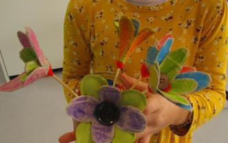 Blütenpracht aus Eierkarton handgemacht: Die Ergebnisse aus dem Elterncafé.