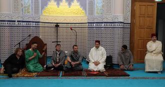 Nach dem Gebet zum Sonnenuntergang kamen Muslime und Gäste zum gemeinsamen Fastenbrechen zusammen. Der Marokkanische Freundschaftskreis verwöhnte seine Gäste mit Datteln, die traditionell zu Beginn des Fastenbrechens gegessen werden, leckeren Süßspeisen, Gerstennudeln in einer marokkanisch gewürzten Soße, Hähnchen in einer kandierten Zwiebel-Rosinen-Soße sowie einem Dessert. Beim Fastenbrechen hatten die Gäste und Gastgeber ebenfalls Gelegenheit zum Austausch.