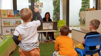 Die Mediatheksleiterin band mit ihren Fragen das junge Publikum aktiv in die Erzählung mit ein. Bei dem Kamishibai mit seinen großflächigen Bildkarten fällt es den Kindern leicht, die Geschichte zu verfolgen. Das Bilderbuchkino fördert Sprache, Wahrnehmung und soziales Miteinander. Deshalb planen Mediathek und Familienzentrum bereits die nächsten Termine: Das Vorlese- und Erzählangebot gehört in unregelmäßigen Abständen zum festen Veranstaltungsprogramm der Mediathek.