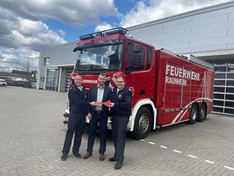 Am Montag, den 31. März, fand die offizielle Schlüsselübergabe statt. Bürgermeister David Rendel überreichte das neue Fahrzeug damit an Stadtbrandinspektor Jan Christopher Gräf und seinen Stellvertreter Martin Gränitz. Rendel betonte die Bedeutung der Investition für die Sicherheit der Stadt: „Ein echtes Kraftpaket für unsere Feuerwehr! Mit dem neuen GTLF sind wir für zukünftige Herausforderungen im Brandschutz noch besser gewappnet. Es ist ein wichtiger Baustein für den Schutz unserer Bürgerinnen und Bürger sowie der zahlreichen Unternehmen in Raunheim.“