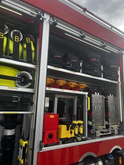 Mit einem 10.000-Liter-Wassertank, zwei zusätzlichen Schaummitteltanks und einer besonders leistungsstarken Feuerwehrpumpe ist das GTLF 10 bestens für Brandeinsätze in Industrie- und Gewerbegebieten, auf Autobahnen sowie in Waldgebieten ausgerüstet.
