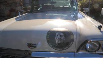 Auf dem Vorplatz kamen die Fans alter Karosserien auf ihre Kosten. Der BSCA Stammtisch Rhein-Main, die regionale Vertretung der Belgian Streetcruiser Association, fuhr mit Oldtimern vor, die zu Elvis‘ Lebzeiten über den Asphalt rollten.