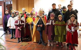Am Montag, den 6. Januar begrüßten Bürgermeister Jochen Engel sowie Mitarbeiterinnen und Mitarbeiter traditionsgemäß die Sternsinger auch im Foyer des Rathauses in Trebur. Musikalisch begleitet von Martin Hannemann und Friederike Kiehl sangen und sprachen sie die Segnungen aus. Anschließend überreichte Jochen Engel eine Geldspende und verteilte Süßigkeiten.