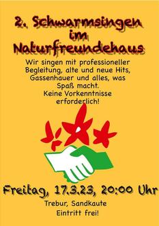 Zweites Schwarmsingen im Naturfreundehaus in der Sandkaute, Freitag 17. März 2023, 20 Uhr, Einlass ab 19 Uhr.