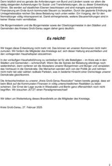 Wir haben in einem Brandbrief an die Kreistagsmitglieder appelliert, die anstehende Erhöhung bewusst abzulehnen und sich ebenfalls unserem Aufruf anzuschließen.