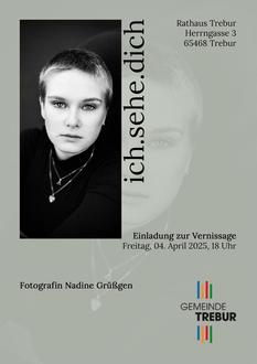 Am Freitag, 4. April 2025 um 18 Uhr findet die Vernissage der Ausstellung „ich.sehe.dich“ im Foyer des Rathauses Trebur statt. Fotografin Nadine Grüßgen zeigt großformatige Fotografien von Frauen in Farbe und Schwarzweiß.
