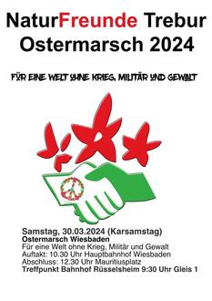 Am Karsamstag sind wir zusammen mit den NaturFreunden Rüsselsheim Teil des Mainz-Wiesbadener Ostermarsch 2024.