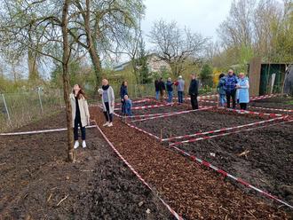 Anschließend wurden 14 Parzellen abgesteckt. Inzwischen stehen zwei Bänke für den fachlichen Austausch und die wohlverdienten Pausen im Gemeinschaftsbereich des Geländes zur Verfügung. Die zukünftigen Gärtner und Gärtnerinnen erhielten zum Start von Jochen Engel Tütchen mit Spinat-, Karotten- und Salatsamen.