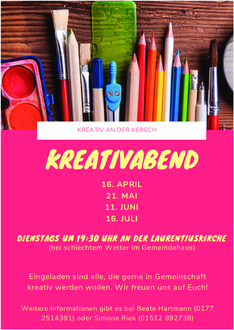 | 19:30 Uhr Kreativabend im Gemeindehaus | |