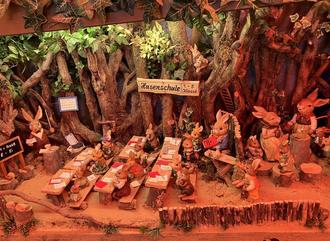 Fasziniert hat aber auch die Ausstellung „Lustiges Hasenleben“. Der St. Wendeler Künstler Karl Heindl präsentierte hier handgefertigte Osterhasenstuben, die einmalig im Südwesten sind. Die zwanzig figurenreichen Szenen, von denen jede mit einer passenden Hintergrundbemalung versehen sind, spiegeln die verschiedenen Lebensbereiche dar und bestechen durch Aussagekraft und Vielfalt.