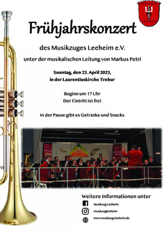 Am Sonntag, den 23. April lädt der Musikzug Leeheim unter der Leitung von Markus Petri um 17 Uhr zu einem Konzert in die Laurentiuskirche ein. Der Eintritt ist frei.